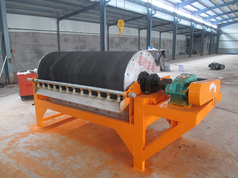 是當礦漿進入磁場區時,其中強磁性礦物被吸附在圓筒表面,弱磁性和非磁性礦物被甩掉排出,而吸附在圓筒表面上的強磁性礦物隨圓筒旋轉、被帶出磁場區、用沖洗水沖入精礦槽中,完成分選作業。