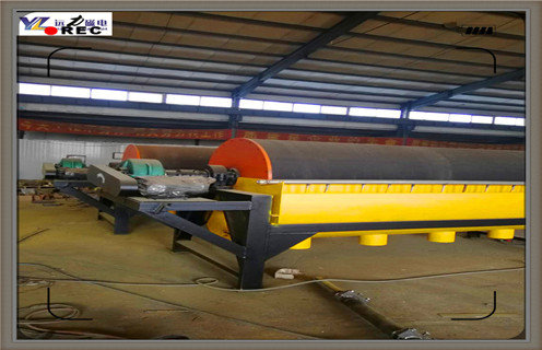 3、吸附階段:驅動機構帶動筒體勻速旋轉,筒體內部的磁系產生穩(wěn)定的強磁場,礦漿中的強磁性礦物(如磁鐵礦、磁黃鐵礦等)在磁場力的作用下發(fā)生磁聚,形成“磁團”或“磁鏈”,并被吸附到筒體表面;弱磁性和非磁性礦物(如脈石)不受磁場影響,繼續(xù)隨礦漿在槽內流動。