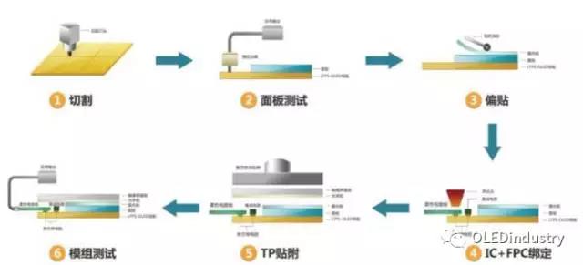如今中小顯示屏面板,觸控功能的實現是通過觸摸屏模組和顯示屏模組的組裝。觸摸屏一般由觸控感應器和玻璃蓋板構成,其生產過程也可以分為三個階段:觸控感應器工序、玻璃蓋板工序、模組組裝工序。